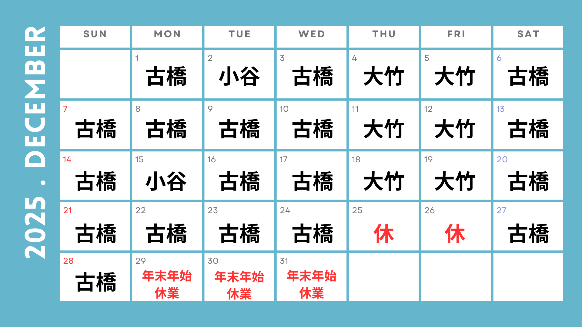 | 平日 10:00~21:30/土日祝 10:00~19:00 (完全予約制) |